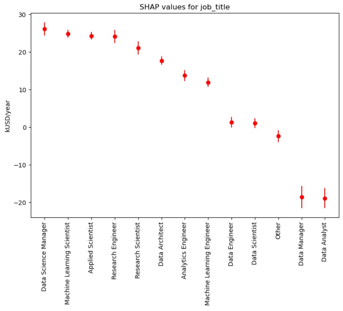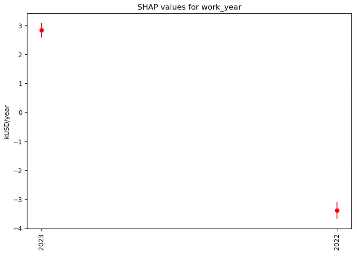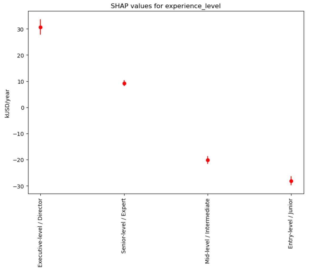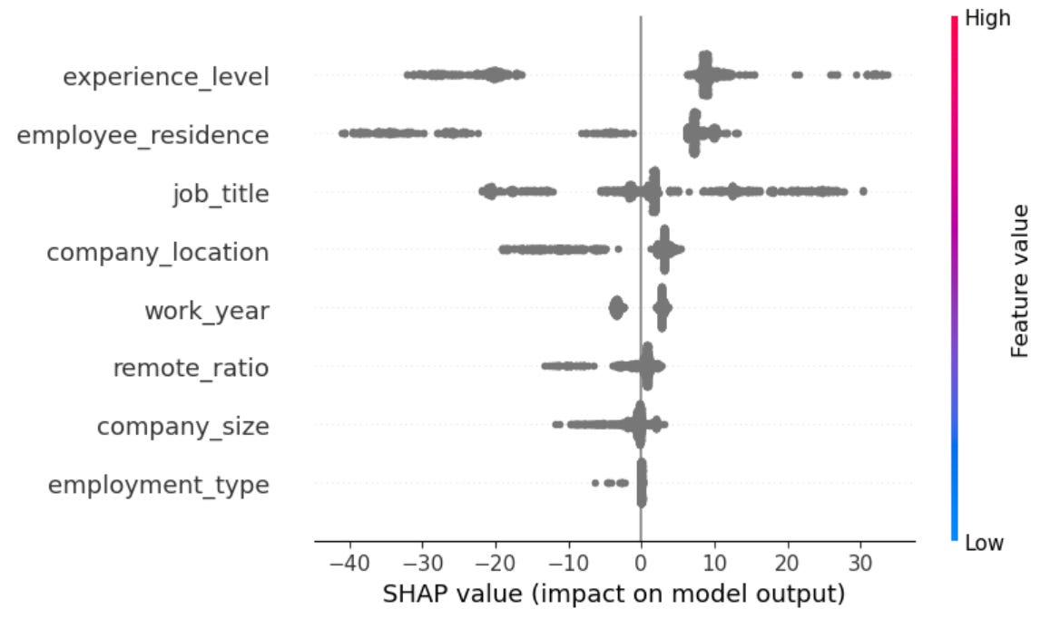 The 2022–2023 year gross salaries: SHAP values for experience level, job title, and more