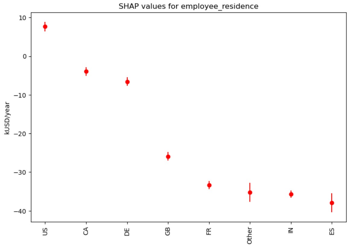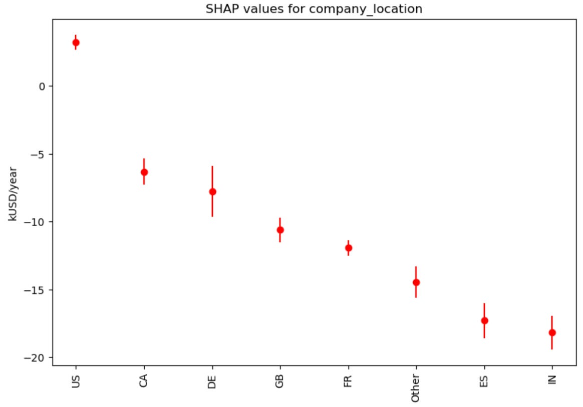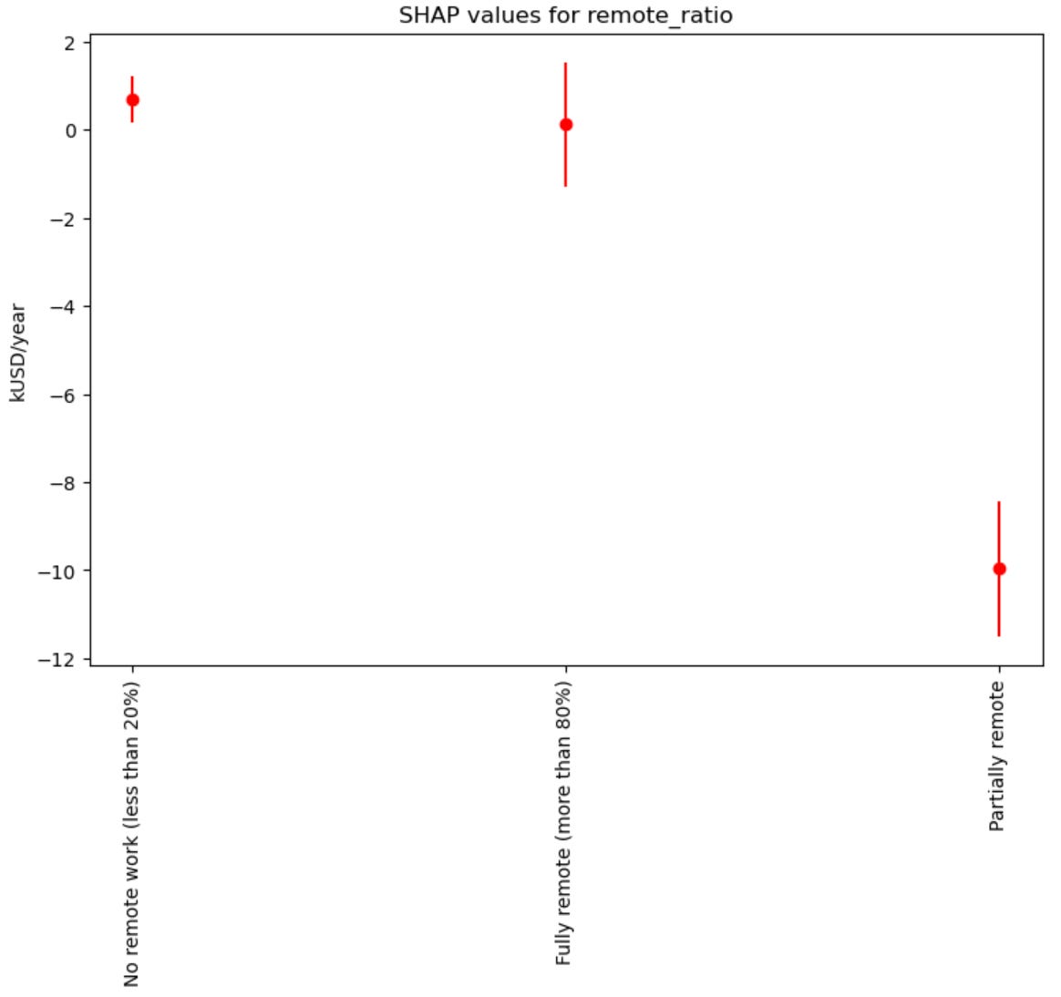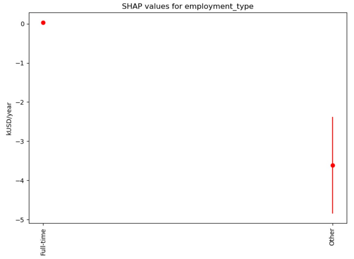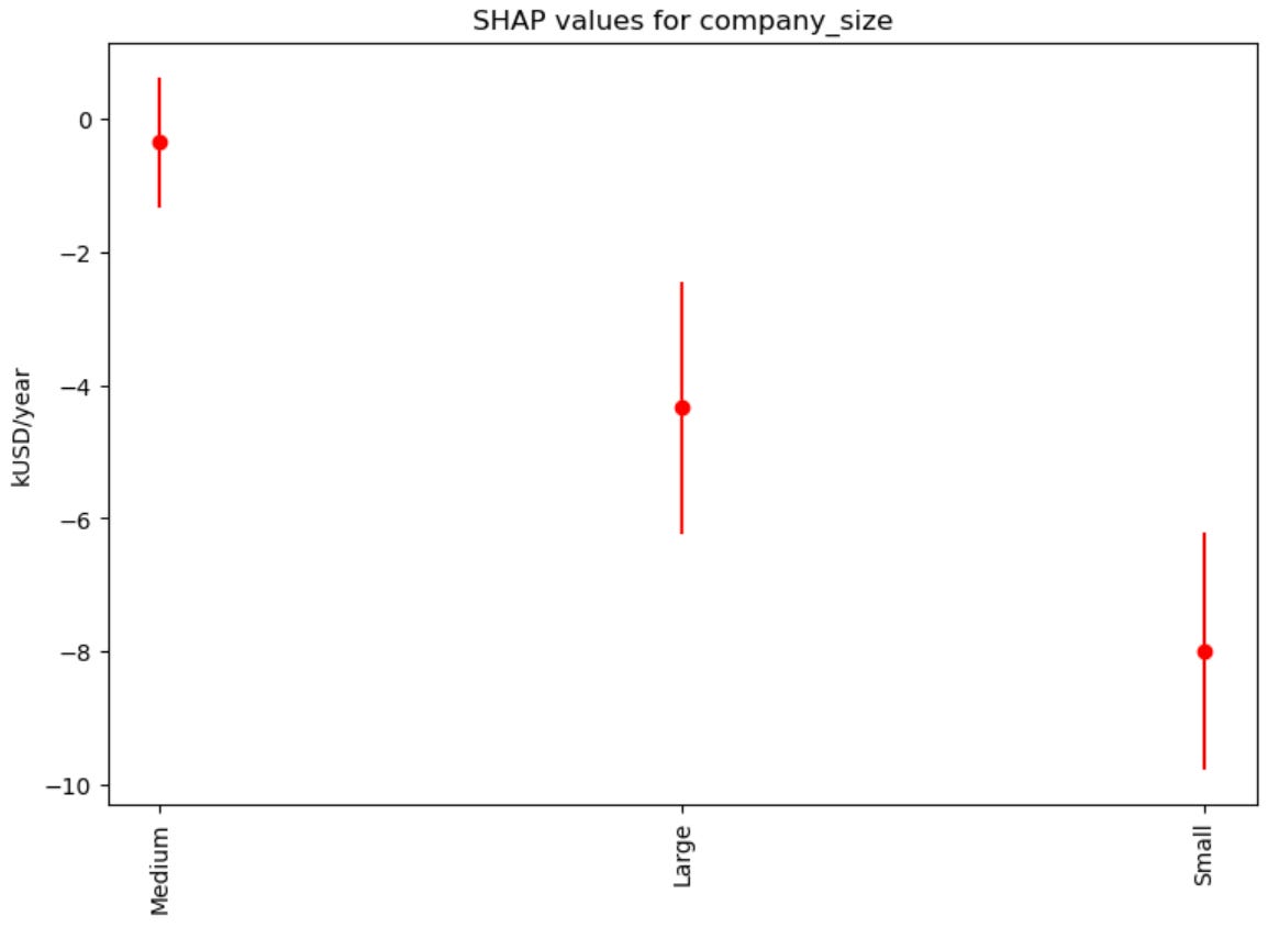 The 2022–2023 year gross salaries: SHAP values for experience level, job title, and more